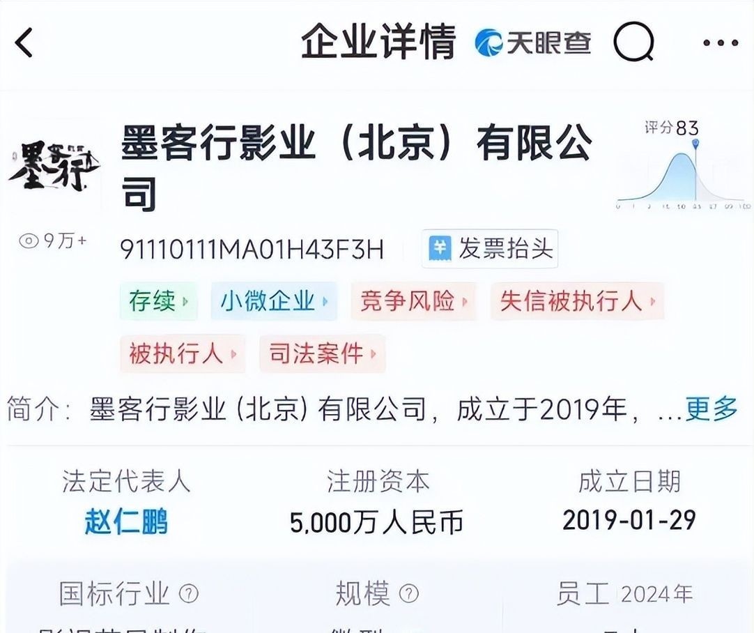 墨客行影业名义上的注册资本高达5000万元,但实际运营状况远不如表面光鲜。