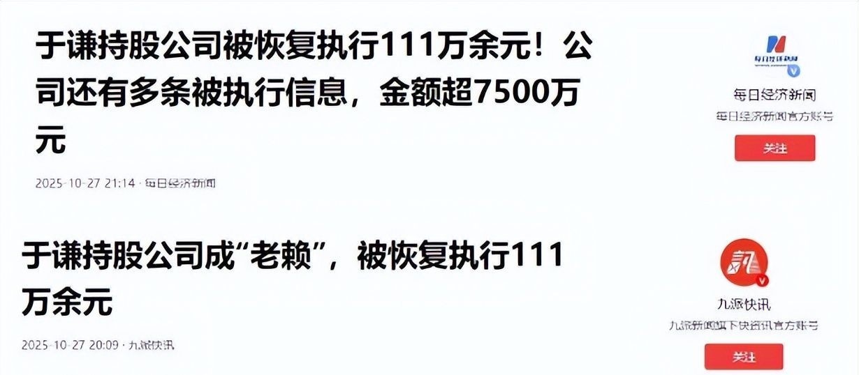 事实上,这次事件并非于谦个人直接负债,而是因股东身份需承担连带责任所致。
