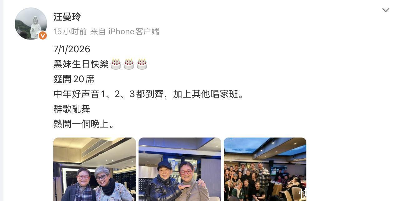 65岁的黑妹(李丽霞)办寿宴,席开二十桌,近两百人到场,场面热闹得像一场小型演唱会。酒过三巡,歌声不断,有人笑称这是“群歌乱舞”——毕竟来的不只是老友,还有《中年好声音》三季的学员和一众唱家班,个个能唱,气氛自然嗨到不行。       别看是主角,黑妹当天穿得可朴素了:一件印花牛仔外套配围巾,完全没走红毯那套。反倒是宾客们打扮得更抢眼——薛家燕一身大花外衣、红唇亮眼;陈曼娜戴顶粉帽,粉黑搭配吸睛;肥妈、米雪、胡枫、黄锦燊、黄淑仪、王玉环……熟面孔一个接一个,老友相聚,笑声不断,合影拍到手软。       最让人意外的是朱咪咪现身。�年离开TVB回新加坡后,她几乎淡出公众视线。这次登台,素颜、穿黑羽绒服,瘦得脸颊凹陷,差点认不出。不过精神头不错,还照旧讲笑话逗大家开心。       黑妹虽从未发过正式唱片,早年靠登台唱歌维生,却因此结识了满圈朋友。如今她仍活跃于各种演出,甚至和肥妈组队开演唱会。人生经历也够曲折:17岁当妈,19岁离婚,23岁再婚移民加拿大,又因生活太闷回港,再度离婚后独自带女儿打拼,开过酒廊、茶餐厅、火锅店,从没停下脚步。       更难得的是,�年查出肺癌一期加脑瘤,却始终乐观面对。如今女儿�岁了,母女俩一起张罗寿宴,其乐融融。这场生日会,不只是一顿饭,更像是她几十年人情冷暖、努力生活的缩影——朋友多,是因为真心待人;活得久,是因为心够大。